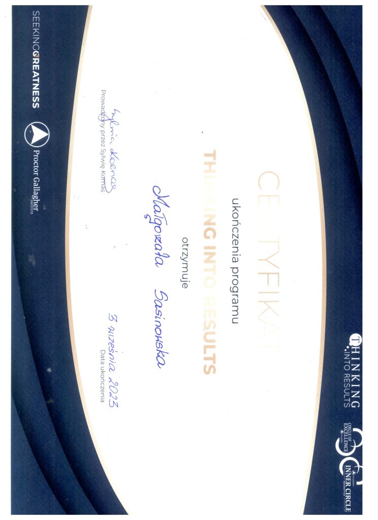 Wszyscy byli ważniejsi ode mnie. Zaczynałam i nie kończyłam tego, co zaplanowałam.. Nie rozumiałam dlaczego tak się dzieje… Przecież mogłam to zrobić…, a jednak nie robiłam… Zawodziłam siebie, narastała frustracja i niezadowolenie. Czułam, że czas mi ucieka, a życie przecieka przez palce… Nie chciałam już dłużej tak żyć – w poczuciu winy i rozżalenia. Nie chciałam za pół roku obudzić się w tym samym miejscu.